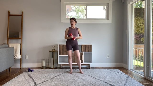 Duration: 33 minutes. Props: 2 lb weights, 8 lb weights. Level: Amplify (3)