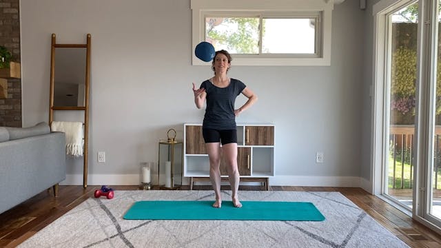 Use a slightly deflated ball to stimulate, guide and challenge you for extra ab work, tougher planks and clever balance practice. Then your 8 lb weight will get your heart rate up for variation of rows, squats and deadl...